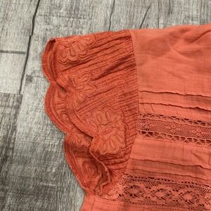 Sundance Aria Embroidered Lace Blouse Cap Sleeves Women's Size Small Coral