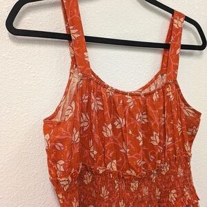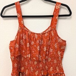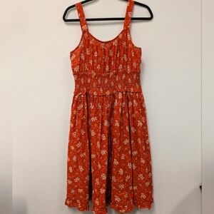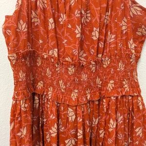 Sundance Artful Ari Midi Cotton Dress sz S Coral Floral Orange Swiss Dot Beach