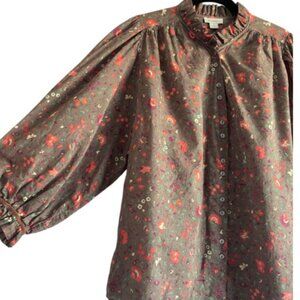 Sundance Ashton 100% Cotton Drape Balloon Sleeve Floral Boho Blouse Size Small