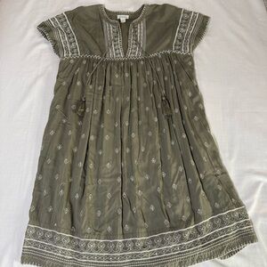 Sundance Aura Embroidered Tunic Dress Size Large Boho Olive Green Festival