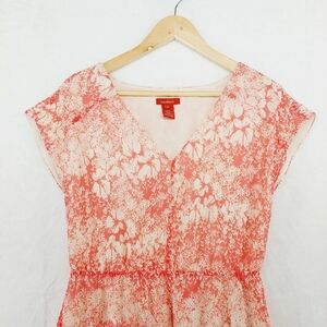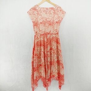Sundance Avonlea Crinkle Silk Floral Coral Cottage Core Midi Dress P1788