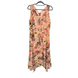 Sundance Awash In Florals V Neck Sleeveless Handkerchief Hem Midi Dress