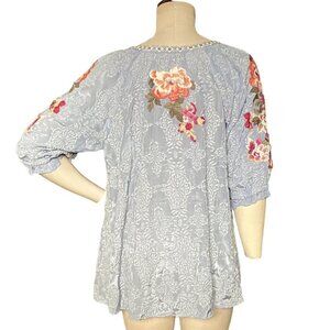 Sundance Ballets Melody Embroidered Detail Blouse Sz L Blue #228D