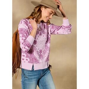 Sundance Bandana Print Maebelle Pullover Sweatshirt, Long Sleeve, Pullover, Crew Neck, in Pink.