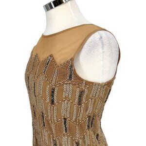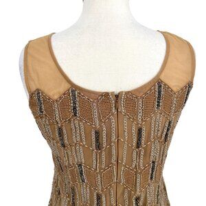 Sundance Beaded Moondusk Top Sleeveless Mesh Beige Tan Size Medium Petite