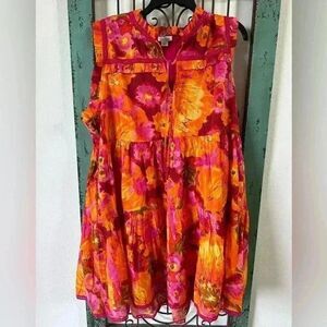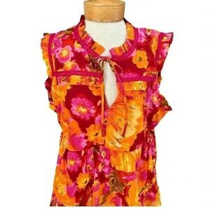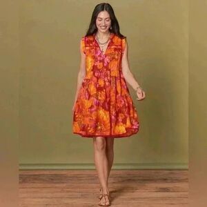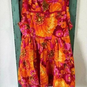 A vibrantly colored, exploded floral print takes center stage on our easy popover, knee-length dress. With one tier, ladder lace and tiny ruffle detail throughout, notch neckline with beaded ties and side seam pockets. Lined. Cotton. Machine wash. Bright & beautiful tropical nights.