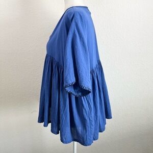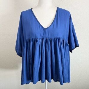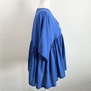 Sundance Beauty Breeze Blue Cotton Peasant Boho Relaxed Swing V-neck Top Small