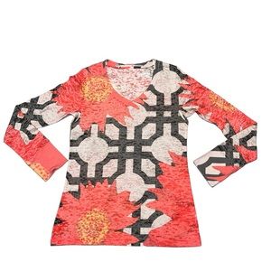 Sundance Before + Again Long Sleeve Printed V-Neck Top size Medium