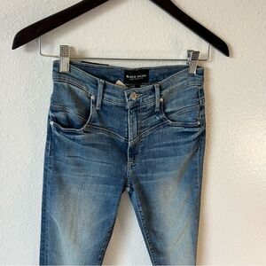 Sleek and untraditional in design, bring these skinny jeans by Black Orchid to life. Double yoke detail at waist fives a flattering step up to your beautiful figure, and with a fade that hits all the right places, zip fly, four pockets. Cotton/tencel/elastomultiester/elastane. Machine wash. Imported. Sizes 24 to 32. 30" inseam; 10" rise; 10" leg opening.