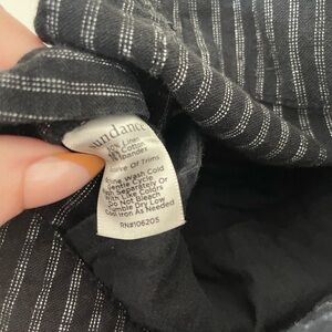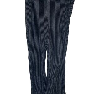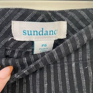 Sundance Black Striped Linen Pants Relaxed Size 6 Petite Side Buttons EUC