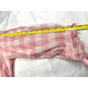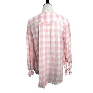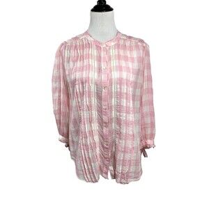 Sundance Blouse Gingham Check Tissue 3/4 Sleeves Tunic Size L Pink Pin Tuck