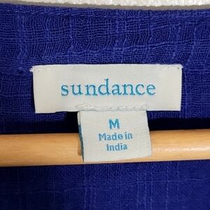 Sundance Blue Cotton Blend Shirt. Long sleeve. V-neckline with tassels.