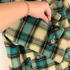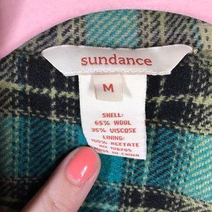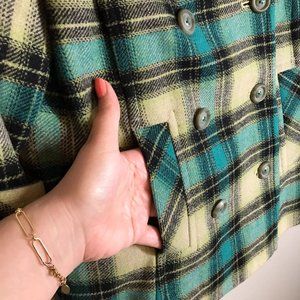 Sundance Blue & Green Plaid Wool Blend Pea Coat, size Medium