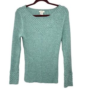 Sundance Blue Ribbed Long Sleeve Cotton Blend Scoop Neck Sweater Womens Large