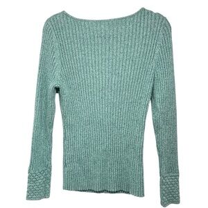 Sundance Blue Ribbed Cotton Blend Long Sleeve Scoop Neck Sweater Womens Large