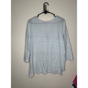 Sundance Blue White Striped 3/4 Sleeve Blouse Linen Cotton Blend Large