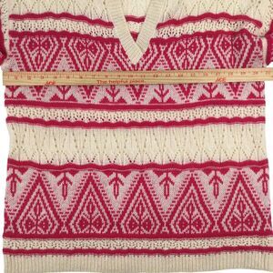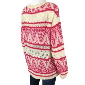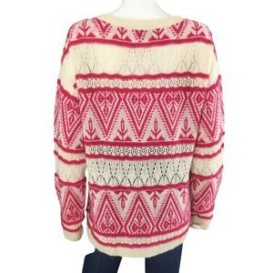 Sundance Brixen Fair Isle V-Neck Sweater Size M Wool Blend Pointelle Pink White