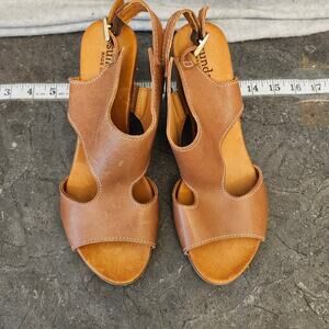 Sundance Brown Leather Heel Sandals Women's Size 39 Platform Sandal Italy Made