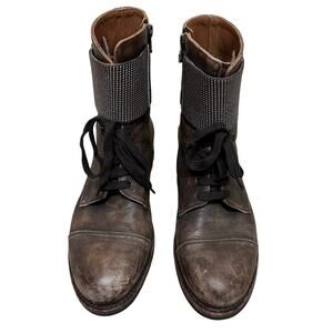 Sundance Brown Studded Leather Combat Boots Women’s Size 38 (US 7.5