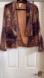 Elegant velvet burnout jacket/blazer. Features rich brown and deep purple tones. Lined, size 6, EUC, 2 slat pockets.