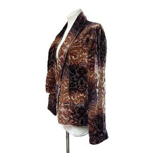 Sundance Burnout Velvet Open Front Jacket Silk Blend Baroque Pattern Size 14 XL