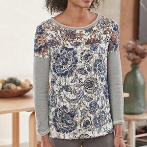 Sundance Caraway Lace Pullover Crochet Overlay Sweatshirt Top Women’s Size Large