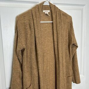 Sundance Cardigan Sweater Women's Petite XS Tan Lambswool LongLine Open Front
