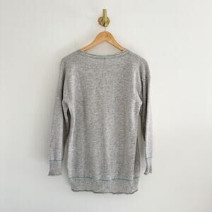 Details: Sundance Front Pockets Raw Hem Long Sleeve Pullover Sweater - Size: XS- Color: Gray- Material: 100% Cashmere- Features: Front pockets, raw hem, long sleeve, round neck, knit, pullover, ribbed cuffs & hem, comfort, casual.
