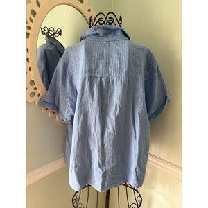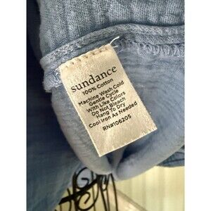 Sundance Catalog Blue Gauzy Cotton S/S Top Blouse Tunic M Boho Beachy