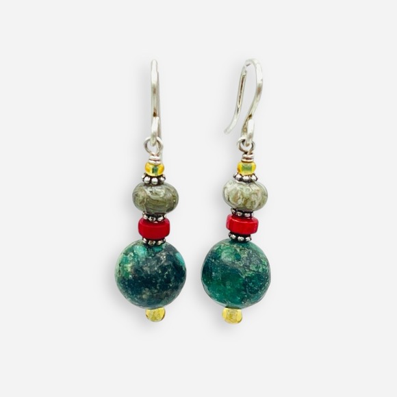 Sundance Catalog Earrings Sterling Silver Turquoise Coral Dangle Drop Beaded