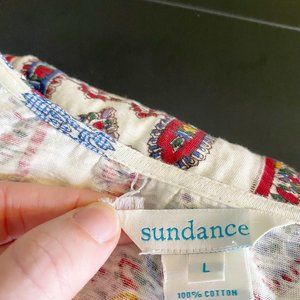 Sundance Catalog Namara Tee Long Sleeve Top Large Ivory Print Tassel Boho