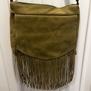 Sundance Catalog Olive Suede Leather Fringe Shoulder Bag