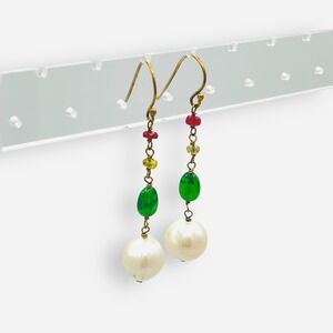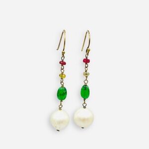 Sundance Catalog On A Cloud Gold Earrings Ruby Citrine Aventurine Pearl Dangle