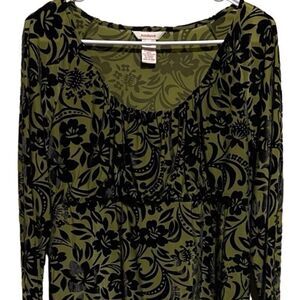 Sundance Catalog- Women Blouson Green w Black Velvet Burnout Top Blouse, Size L