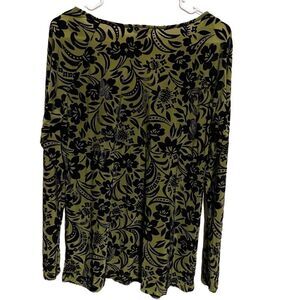 Sundance Catalog- Women Blouson Green w Black Velvet Burnout Top Blouse, Size Large