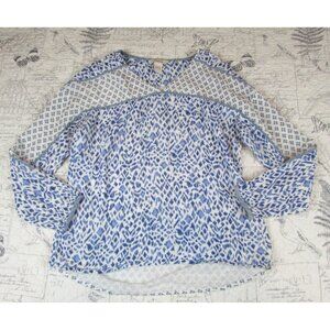 Sundance Catalog Women's Blue white ikat multi print long sleeve cotton top S