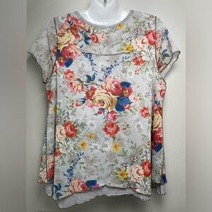 Sundance Catalog Womens Layered Striped Floral Top Watercolor Boho size Large