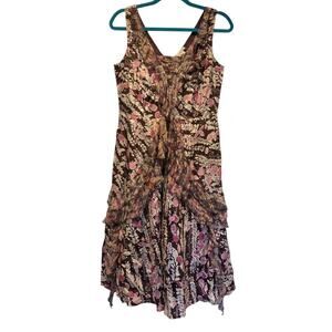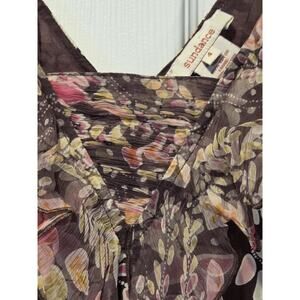 Sundance Catalog Y2K Silk Floral V-Neck Ruffle Satin Sleeveless Brown Dress | 4