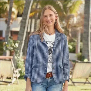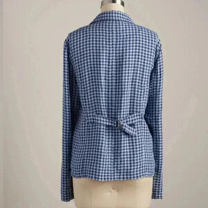 Sundance Catalog Ziri Blazer Linen Blue Checkered Button Up Jacket Sz PXXS