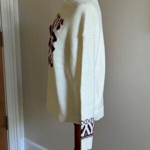 Sundance Catalog nordic snowflake design sweater. Sundance described as "the nordic snowflake takes center stage with pattern at cuffs and embroidery at neck for a pop of color. Cozy for an easy fit. Medium weight with rib trim. Acrylic/nylon". Hand Wash cold or dry clean..