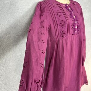 Sundance Chantae Eyelet Dress Pintuck Long Sleeve Buttons Womens XS Pink NWT