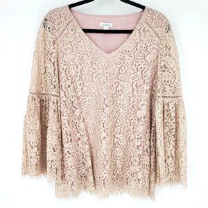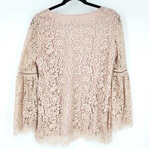 Sundance Charmant Bell Sleeve Floral Lace Blouse Blush Pink Small