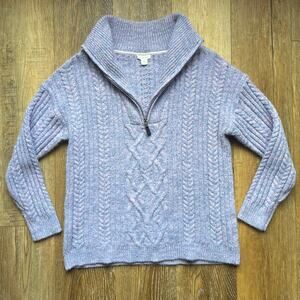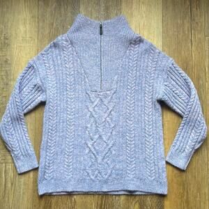 Sundance Chunky Cable Knit Sweater 1/2 Zip Oversized M Blue Preppy Fisherman