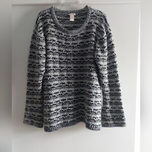 Sundance Chunky Knit Round Neck Sweater Gray Black stripes XL
