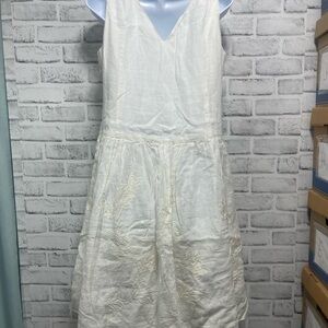 Sundance Clover Blossom Creamy White Linen Sleeveless Lined Dress 10