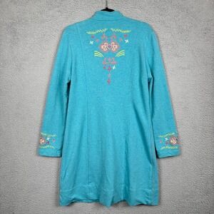 Sundance Coat Womens M Blue Freya Embroidered Duster Jacket