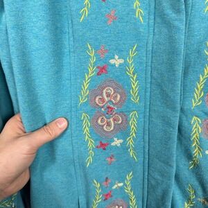 * Color: Teal Blue with multicolor floral embroidery