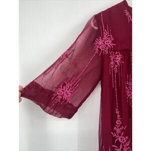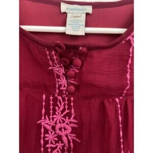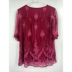 Sundance Cora Floral Embroidered Overlay Blouse Wineberry Red Small Petite