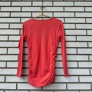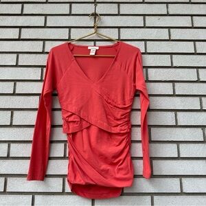 Sundance Coral Orange Ruched Surplice Long Sleeve Top Small Ballet Wrap Tee