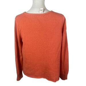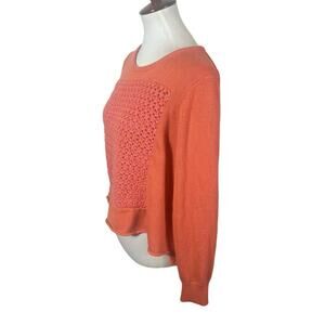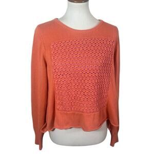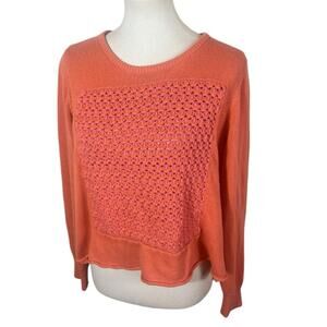 Sundance Coral Silk Blend Knit Crewneck Sweater with Crochet Front Panel Size XL